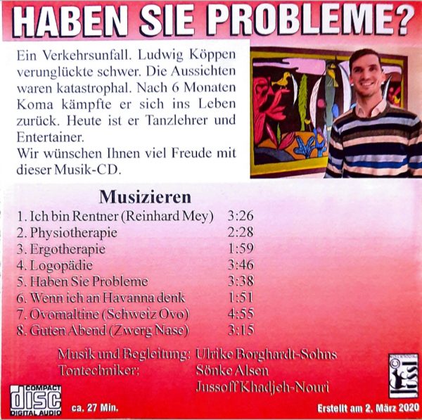 Ein Verkehrsunfall. Ludwig Köppen verunglückte schwer. Die Aussichten waren katastrophal. Nach 6 Monaten Koma kämpfte er sich ins Leben zurück. Heute ist er Tanzlehrer und Entertainer. Wir wünschen Ihnen viel Freude mit dieser Musik-CD.